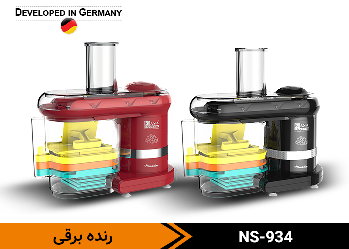 رنده برقیNS-934  ناساالکتریک از رنده‌های برقی می‌باشد که دارای موتور قدرتمندی بوده و در عین قدرتمندی کم صدا می‌باشد. به همین سبب استفاده از آن مزاحمتی را برای اطرافیان ایجاد نمی‌کند. این رنده برقی دارای 7 عدد رنده می‌باشد که هر کدام از آن‌ها برای برش خاصی به کار برده می‌شوند. مثلاً یکی از دنده‍‌های دارای سوراخ‌های ریزی می‌باشد که برای رنده ریز یا پوره کردن، یکی دارای تیغه‌های کشیده و بلندی می‌باشد که برای خلال کردن مورد استفاده می‌باشد. در واقع این رنده برقی قابلیت‌های یک خرد کن را نیز دارد.